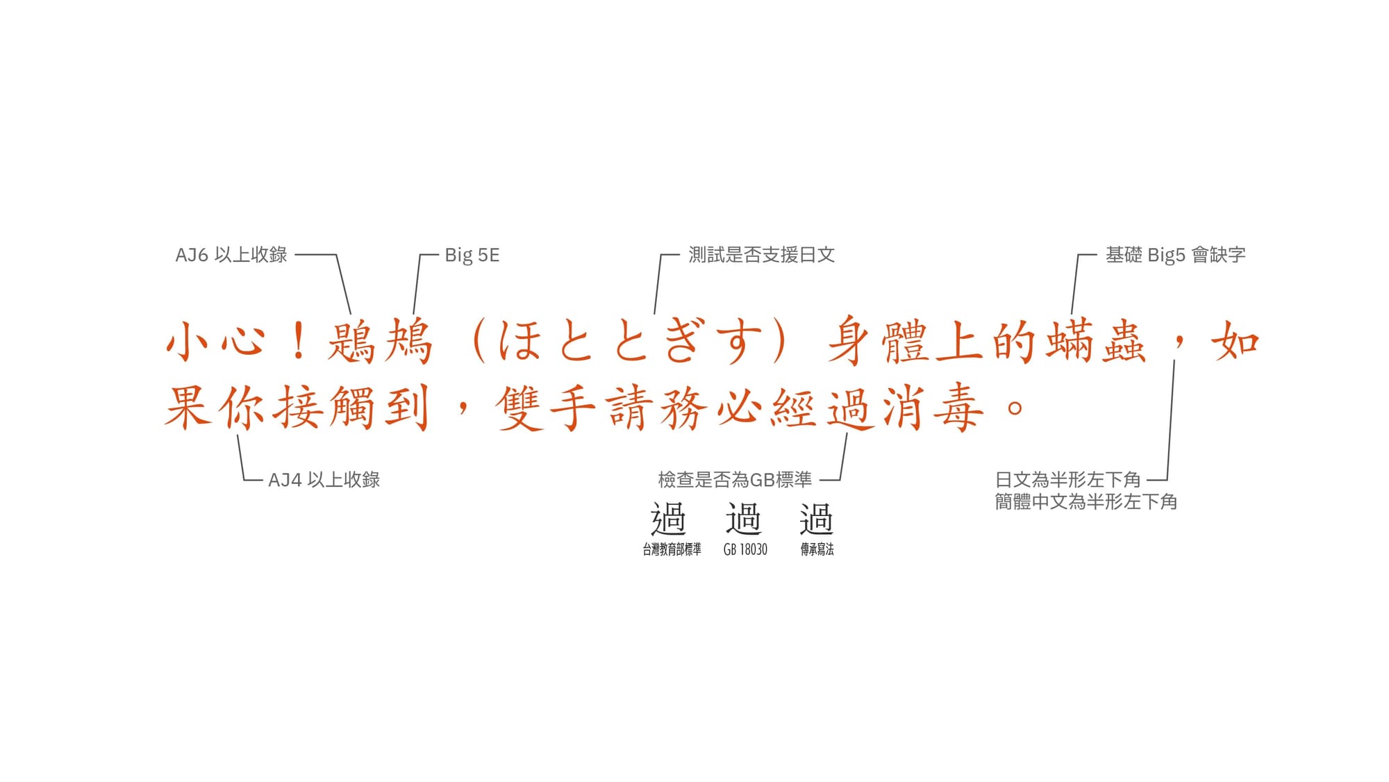 此招適用於日文字型,首先我們能先使用「小心!鶗鴂(ほととぎす)身體上的蟎蟲,如果你接觸到,雙手請務必經過消毒。」測試,該字體缺字程度與相關資訊。